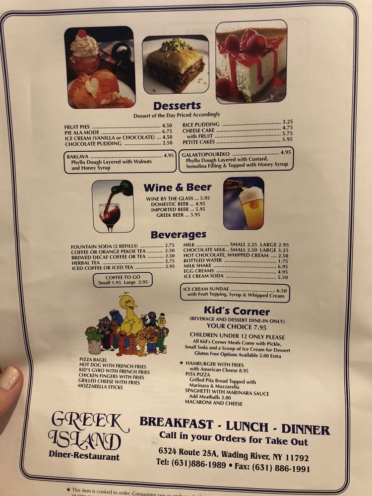 Welcome to the Greek Island Diner, a hidden gem nestled at 6324 NY-25A in Wading River, NY. This diner elevates the classic dining experience with a delightful menu encompassing mouthwatering appetizers and homemade soups. Start your meal with Fresh Mozzarella and Tomato or dive into savory Buffalo Wings. Their featured soup, Avgolemeno, offers a taste of traditional Greek comfort.