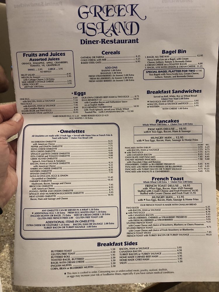 When it comes to main courses, the diner excels with hearty options like Eggplant Parm and a variety of generous breakfast dishes, praised for their freshness and attention to detail. Patrons rave about the warm hospitality and quick service, ensuring a pleasant dining experience. Don't forget to save room for dessert! Indulge in Fruit Pies or satisfying Ice Cream to round off your meal. Whether you're stopping by for a quick bite or a leisurely meal, Greek Island Diner promises deliciousness in every bite.